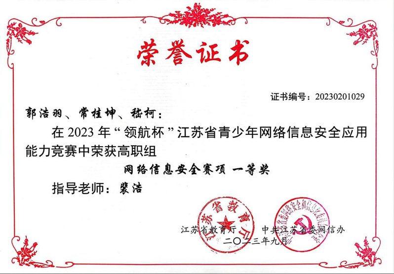 信息安全技术应用专业成立于2023年,前身是1999年成立的计算机网络技术专业(江苏省“十二五”高等学校重点建设专业)。学生在校期间可取得网络安全运营平台管理职业技能等级证书(中级)WEB安全测试职业技能等级证书(初、中级)或其它信息安全类证书。学生就业环境好、薪资高,为扬州大学合作本科教学点,学历提升途径便利。