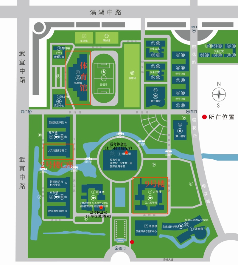 4.各位送考家长可在送考休息室等待,上午校测考试送考休息室地点为图文信息中心一楼,下午加试考试送考休息室地点为5号楼5101教室;校测考试期间、加试期间家长不得随意进入考试区域。